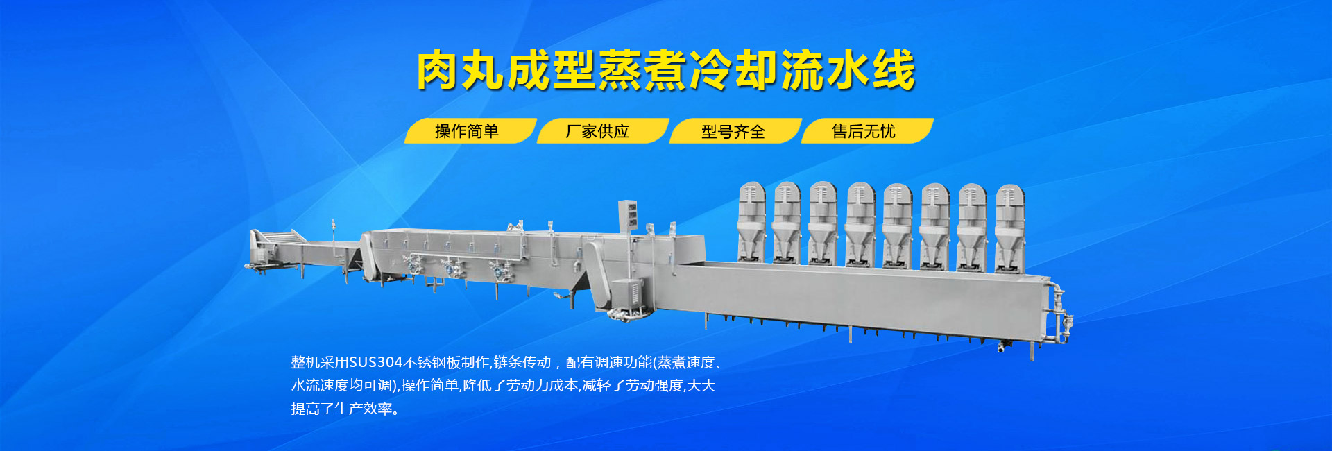 公司主要生產(chǎn)不銹鋼制品食品機(jī)械:各種規(guī)格型號(hào)真空滾揉機(jī)、制冷滾揉機(jī)、提升機(jī)、電加熱夾層鍋、肉丸機(jī)、真空攪拌機(jī)、絞肉機(jī)、灌腸機(jī)、打卡機(jī)、線扎機(jī)、斬拌機(jī)、鹽水注射機(jī)、煙熏爐、油炸機(jī)、巴氏殺菌線、連續(xù)油炸線、肉丸成型水煮線、醬鹵生產(chǎn)線、肉丸破碎機(jī)、真空包裝機(jī)、洗袋風(fēng)干機(jī)、豬頭劈半機(jī)、不銹鋼火腿模具、肉斗車、案桌、煙熏車、屠宰類機(jī)械設(shè)備、清洗風(fēng)干設(shè)備、肉類解凍設(shè)備、滾筒拌料機(jī)等。產(chǎn)品廣泛適用于火腿腸、肉丸、肉串、鹵制品、海產(chǎn)品、禽類深加工、油炸、泡椒風(fēng)味、速凍水餃、魚(yú)豆腐、千葉豆腐、豆腐干、牛肉干、牛排雞排類、禽蛋、麻辣、休閑、水果蔬菜清洗、中央廚房、餐飲連鎖、寵物食品等食品生產(chǎn)。